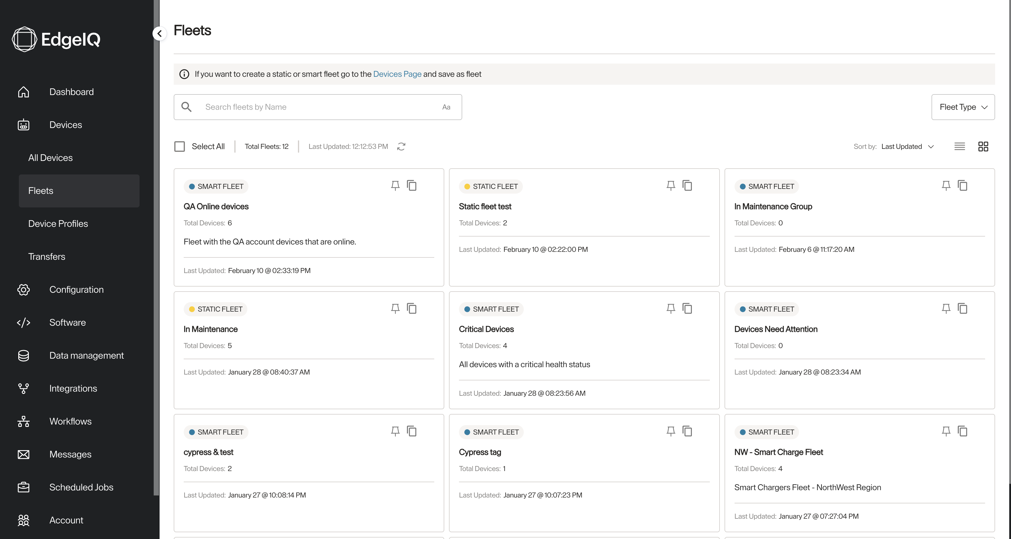 You can also copy a fleet, with a different name, if it is a static fleet, it will have the same devices attached to it, if it is a smart fleet, it will have the same filtering criteria and by default all the devices that match it will be added to this new copy fleet.